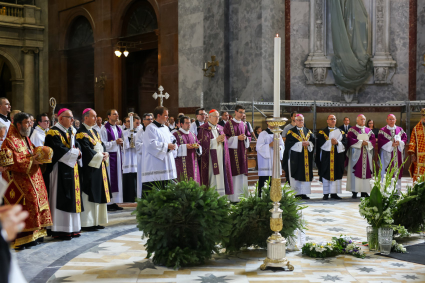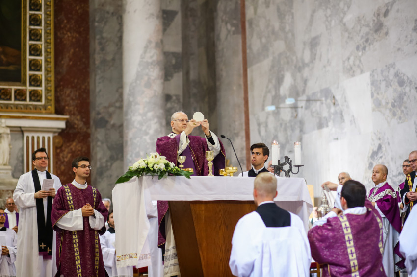 A szentmise főcelebránsa és szónoka Erdő Péter bíboros, prímás volt. Szentbeszédét teljes terjedelemben közöljük.