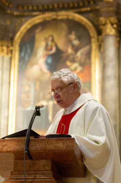 Elmondta, hogy Belgrádba érkezése óta első alkalommal mutat be szentmisét a székvároson kívül, ami nagy öröm számára, de szomorúság is társul hozzá, hisz még nem beszéli az itt élők anyanyelvét.