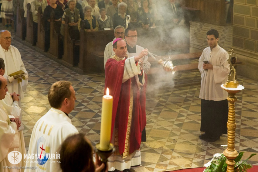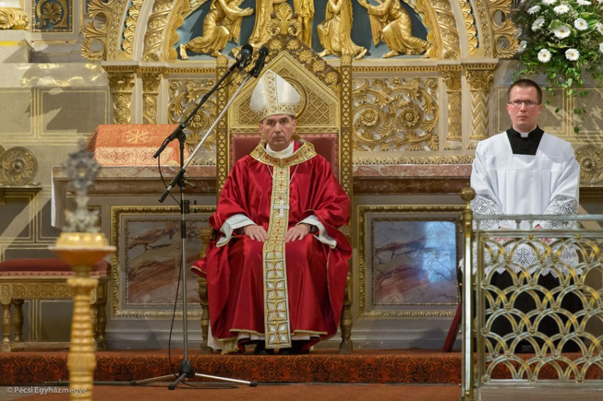 „Megköszönjük az Úristennek, hogy ehhez a Szentegyházhoz tartozunk. Megköszönjük, hogy a székesegyház az egyházat jelenti számunkra. Ez az egység, a központ, az otthon, a teljesség, a biztonság, maga az élet. A központ számunkra Krisztus. Otthon érezzük magunkat a székesegyházban, mert a miénk. Mert beleoltódtunk a szentségek révén. Semmi sem hiányzik az életünkből. Minden, ami élet, teljesség, jövő, ami után vágyakozik a szívünk, Isten szentegyházában a valóság. Isten lakik nálunk, és mi az Istennél lakunk. Ez egy szeretetkapcsolat” – ezekkel a gondolatokkal kezdte homíliáját Udvardy György megyéspüspök a Pécsi Egyházmegye védőszentjeinek ünnepén.