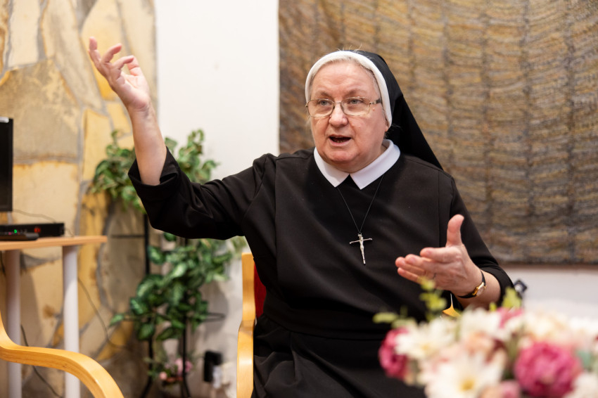 Beszélgetésünk közben odalép hozzá egy fiatalabb nővér, keresztet rajzol a homlokára, s a magáéra is kér egyet. Megkapó jelenet. „Ivett nővér az, aki a leginkább a szívén hordozza az imaéletünket. Mindig valami fontos ügyben jár, most épp a vonathoz rohan” – mutatja be őt futtában Erika nővér, aki már nyugdíjas, de tevékenyen részt vesz a lelki támogatásban. „Az életünk és a szolgálatunk alapja ez a közösség. Itt vagyunk otthon” – mondja szerényen. Szép, hogy éppen Szent József ünnepére esik a látogatásunk: ő a rend patrónusa. Erika nővér szerint már sokszor sietett a segítségükre a munkás szent.
