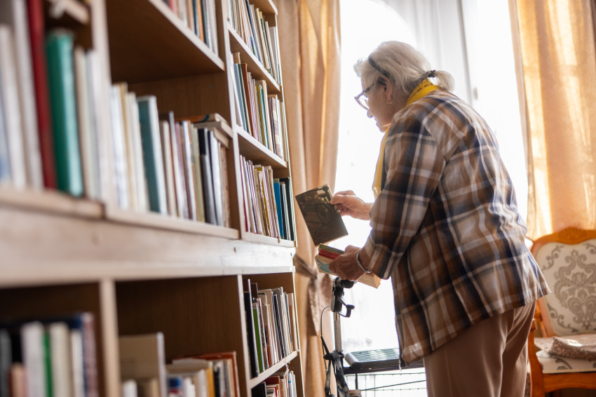 Toókosné Fehér Dorottyával a zegzugos kertben sétálunk, ő a négyfős mentálhigiénés csapat vezetője. Színes palettát kínálnak: van művészetterápia – ahol a lényeg a belső érzelmek kifejezése –, gyászfeldolgozó csoport és irodalmi teaház is. Ez utóbbit különösen szeretik az idősek, gyakran hoznak saját alkotásokat, kedvenceket egy-egy ünnepkör vagy évforduló kapcsán. A foglalkozásokat délelőtt tartják, amikor még mindenki frissebb. A lehetőségekhez mérten a demenciával élőket is igyekeznek bevonni ezekbe a tevékenységekbe. Önszerveződő körök is vannak, például a dalárda vagy a kártyaklub.