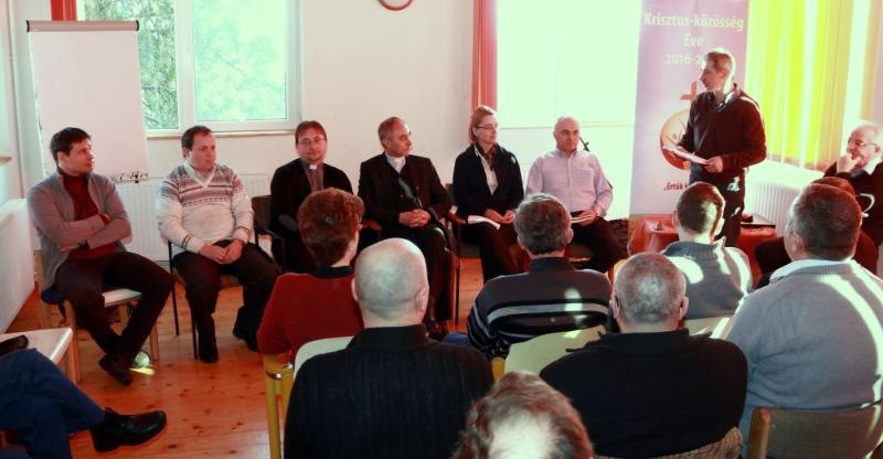 Az előadást három pódiumbeszélgetés követte. Az első során papok és világiak, közösségek vezetői ültek a hallgatóság elé, és a közös foglalkozások szervezésének módjáról beszélgettek. Kiemelték, fontos, hogy a plébánia mint intézmény, és az azt alkotó emberek maguk is nyitottak legyenek. Nagy segítség továbbá, ha megerősítik az elképzelésekkel, szándékkal és cselekvőkészséggel rendelkezőket. Mindazonáltal pedig a szeretet működjön, az sugározzon a közösségből, annak vezetőjéből és tagjaiból, és engedjék, hogy a Szentlélek működjön – nem kell mindent foggal-körömmel irányítani. Fontosak a plébánián a könnyed, szabadidős programok is, amelyek elérik a távolabb lévőket, kialakítják a kapcsolatokat, megadják az otthonosság érzését – tették hozzá.