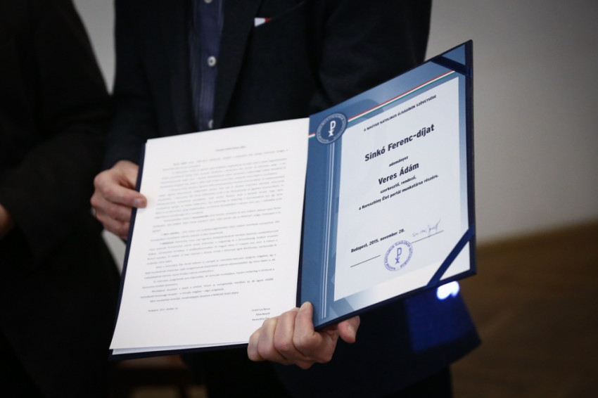 A tanulmányi napon átadták a MAKÚSZ két kitüntetését is. A harminc év alatti, a szakmát kiválóan művelő és a katolikus értékrendet képviselő újságírók elismerésre szolgáló Sinkó Ferenc-díjat idén Veres Ádám, a Keresztény Élet internetes portáljának szerkesztő-rendezője érdemelte ki. A díjat, amelyet a névadó lánya, Sinkó Veronika adott át, hagyományosan az újságírószövetség Táncsics-díjasai ítélik oda.