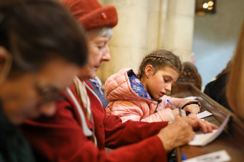 A tanúságtételek után a közösség tagjai és segítői üres lapokat és borítékokat osztottak ki a jelen lévő több száz embernek, akik hosszú leveleket írtak Teréznek. Feltárták neki szívük legbensőbb szükségeit is, majd a borítékokat a végeláthatatlannak tűnő sort kiállva az oltár elé vitték, és a Kis Szent Teréz képe mellett elhelyezett hatalmas kosárba tették, ami csordultig megtelt a levelekkel. A mise kezdete előtti háromnegyed óra sem volt elég arra, hogy minden levél eljusson ide.