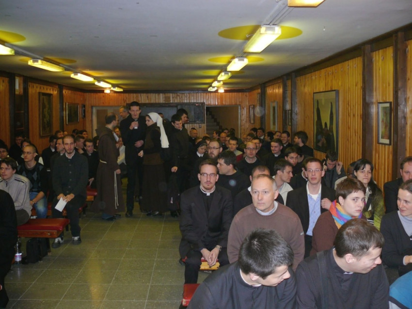 A délelőtt folyamán Papp Miklós görögkatolikus pap Merre a jövő? címmel tartott előadást. Beszédében arra biztatta a jelen lévő szerzetesnövendékeket és kispapokat, hogy ne a világ dolgaiban legyenek jártasak, hanem az életvezetésben. Kitért továbbá a férfias és nőies szeretetre, illetve a vallásosság férfiakra és nőkre jellemző sajátosságaira, majd a krisztusi új boldogságfogalomról beszélt, amely abban ragadható meg, ha valaki a Mennyei Atyától akart helyen tudja magát az életében, mindennapjaiban.