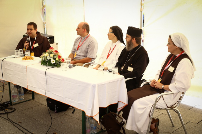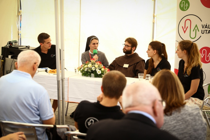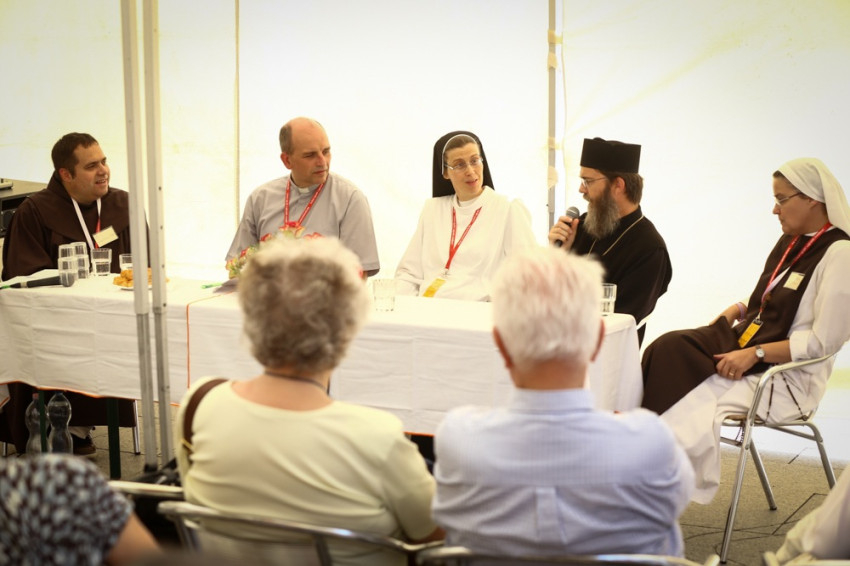 A szerzetesség teológiájáról szóló beszélgetésen Deák Hedvig domonkos nővér, Versegi Beáta Mária nővér a Nyolc Boldogság Közösségből, Orosz Atanáz miskolci görögkatolikus püspök és Lukács János SJ vettek részt; a beszélgetést Szabó Xavér OFM vezette.