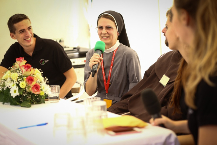 Mi kell ahhoz, hogy valaki szerzetes legyen? – kérdezték a fiatalok. Eszter nővér sorolta: meghívás Istentől, az erre adott személyes válasz, a választott közösség útjának elfogadása – és sok bizalom…