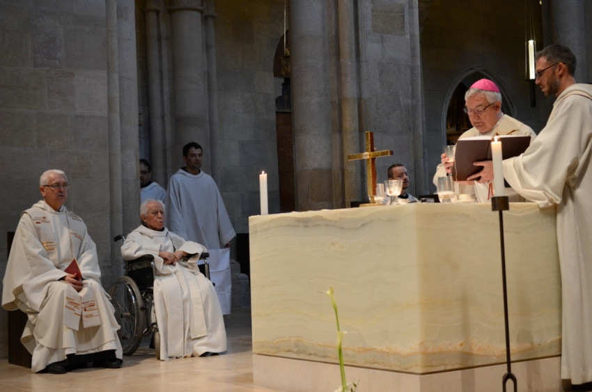 A szerzetesi tanulmányi napok második napján a Pannonhalmáról, Bakonybélből, Győrből és Budapestről érkezett mintegy negyven szerzetes a konventmisében közösen adott hálát Istennek a gyémántmisés Forrai Botond OSB, valamint az aranymisés Áment Lukács OSB szolgálatáért. A Várszegi Asztrik főapát vezette szentmisén a szerzetesek mellett részt vettek a bencés öregdiákok, valamint a csanaki egyházközség (Forrai Botond egykori szolgálati helye) képviselői is.