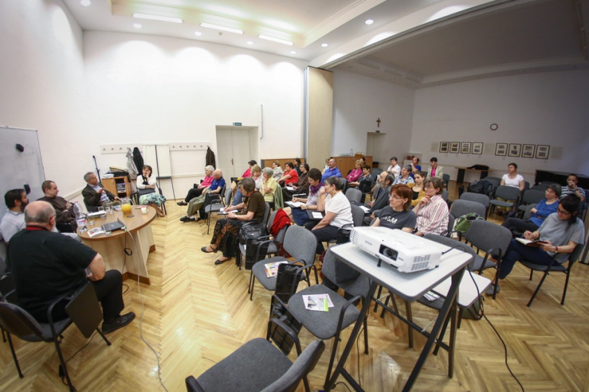 A Cigánypasztorációs Műhely keretében szervezett találkozó Hofher József, a jezsuita rendtartomány cigánypasztorációs referense moderálásával zajlott a Párbeszéd Háza Pedro Arrupe-termében.