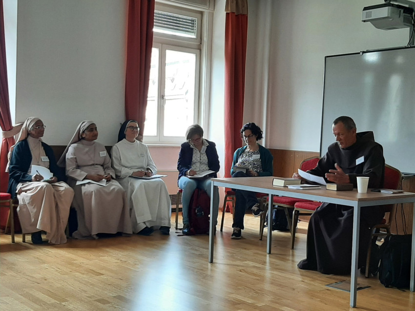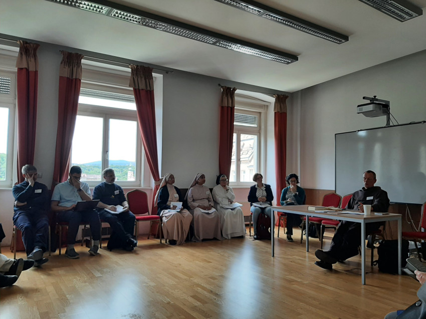 Orosz Lóránt ferences kánonjogász először a megszentelt élet formáiról beszélt, majd felvázolta a noviciátus, az ideiglenes és örökfogadalom történetét, utána a tagok felvételéről beszélt. Kiemelte, hogy fontos a fokozatos bevezetés a szerzetesi és közösségi életbe. Ezután az Egyházi Törvénykönyv ide vonatkozó jogszabályait felolvasták és értelmezték, ezt követőan a már előzetesen írásban feltett kérdésekre válaszolt az előadó.