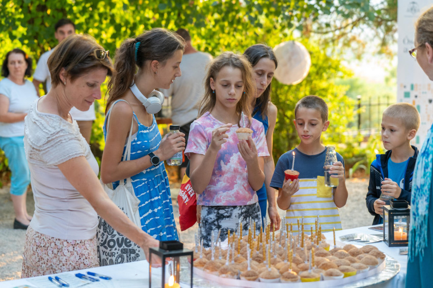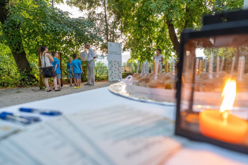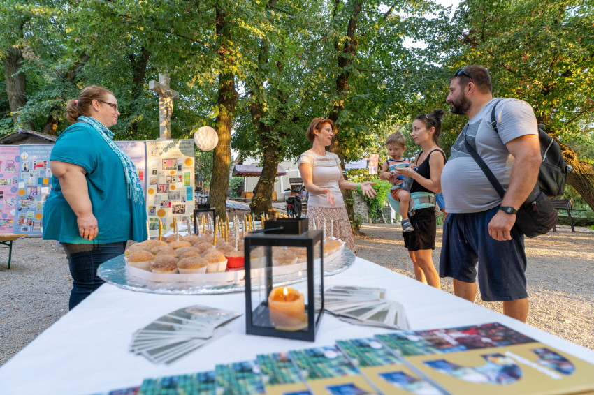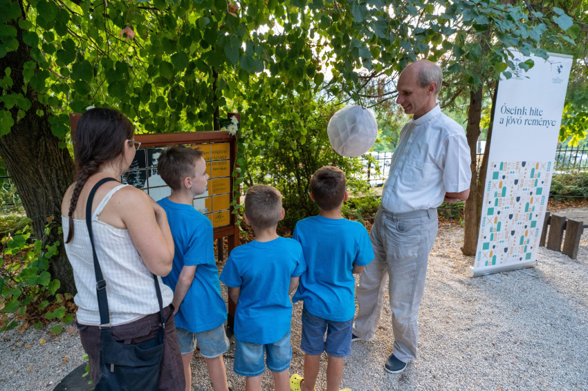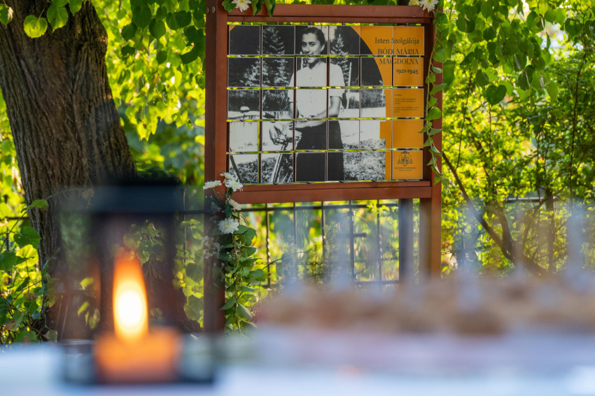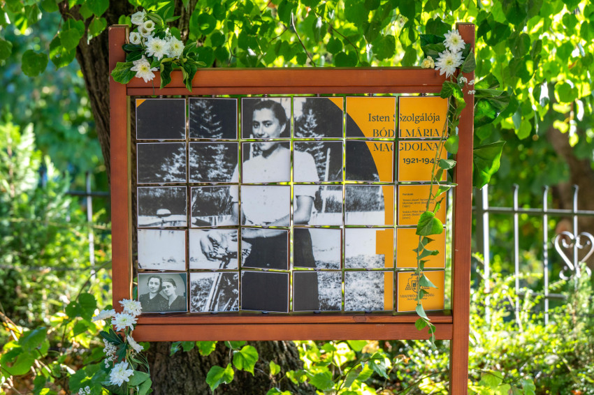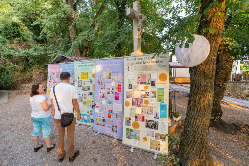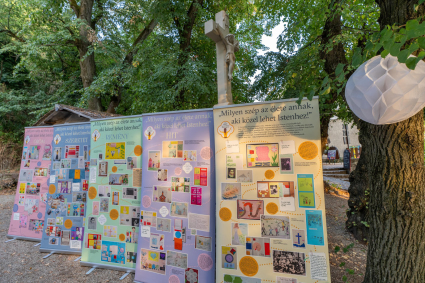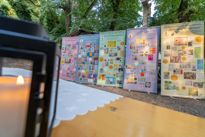 A templom előtt sokan jönnek-mennek, családok, fiatalok, idősebbek. Roll-upok, illetve egy forgathatós kirakós tábla segítségével mutatták be az érdeklődőknek Bódi Mária Magdolna életútját, példáját, illetve egy kvízjátékkal is készültek a szervezők.