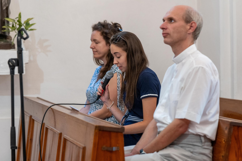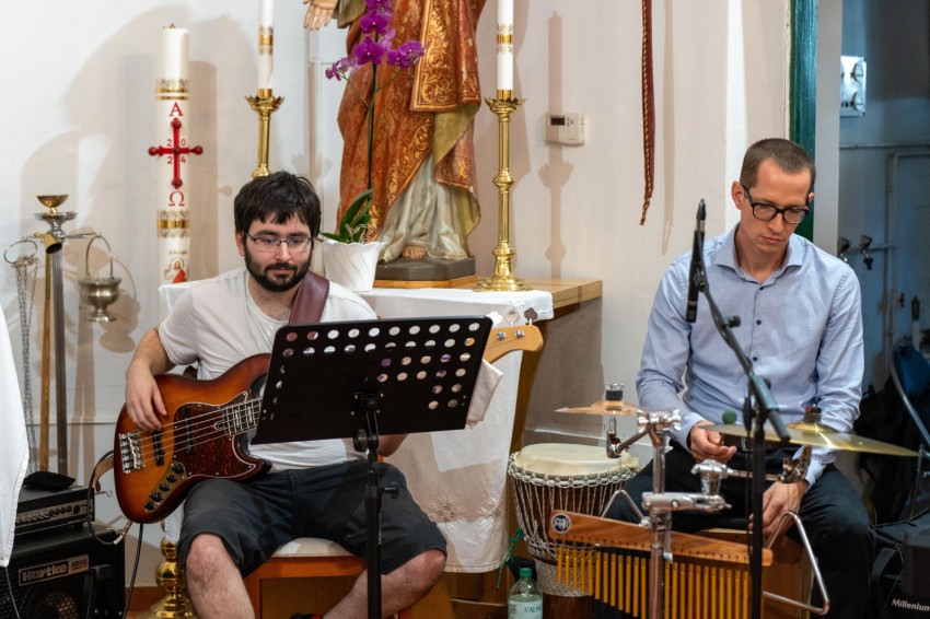 A templomban pedig három órán keresztül imádságra volt lehetőség. Énekek, dicsőítések, elmélkedések hangoztak el, amiket Szakács Péter plébános írt, aki Bódi Mária Magdolna tiszteletével kapcsolatos referens a Veszprémi Főegyházmegyében.