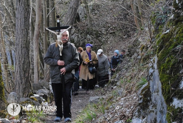 Az idén a szeszélyes időjárás miatt meglehetősen kevesen vállalták az erdei keresztutat. A jelenlévők a sziklába vájt stációk előtt elmélkedve, imádkozva emlékeztek meg a szenvedéstörténetről. A sok helyen nagy szikladarabokkal nehezített kálvária az út végén lévő kis kápolnánál ért véget.