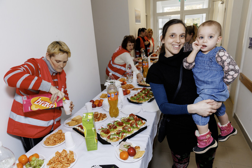 Hittner Krisztina a dm Kft. képviseletében szólt a jelenlévőkhöz. „Nagy öröm egy csecsemő érkezése a családba, de sok nehézséggel is jár, anyagi nehézségekkel is. 16 éve az a célunk, hogy ezt az időszakot könnyebbé tegyük. Országosan 260 üzletünkkel szimbolikus keresztszülőséget vállaltunk 260 családnál” – fogalmazott, és megköszönte az együttműködést a Karitásszal, hiszen így tudnak valóban eljutni azokhoz a kisgyermekes rászoruló családokhoz, akiknél a legjobb helyen vannak az általuk adományozott pelenkák.