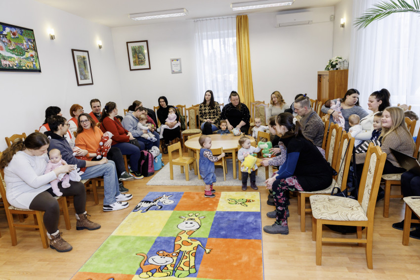 A községház dísztermében gyülekeztek a családok rengeteg kicsi és még kisebb babával, iker újszülöttekkel, totyogósokkal a családias hangulatú találkozásra, de voltak nagyobb testvérek is, akik szívesen eljöttek az alkalomra.