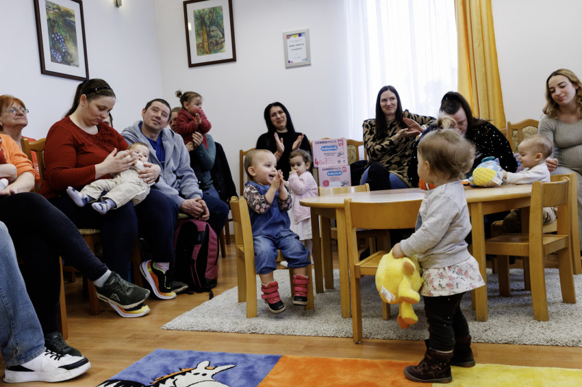 A monorierdei önkéntesek segítségével a családoknak névre szólóan kiosztották a pelenkákat. Egymás után vitték ki a szülők a piciket, akik közül néhány még vissza is integetett.