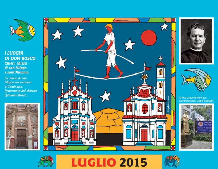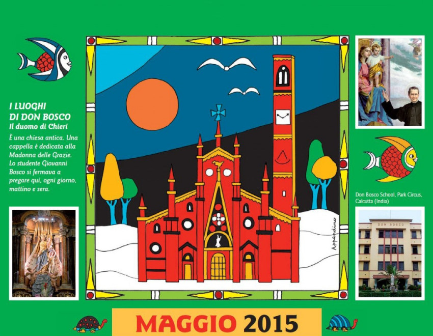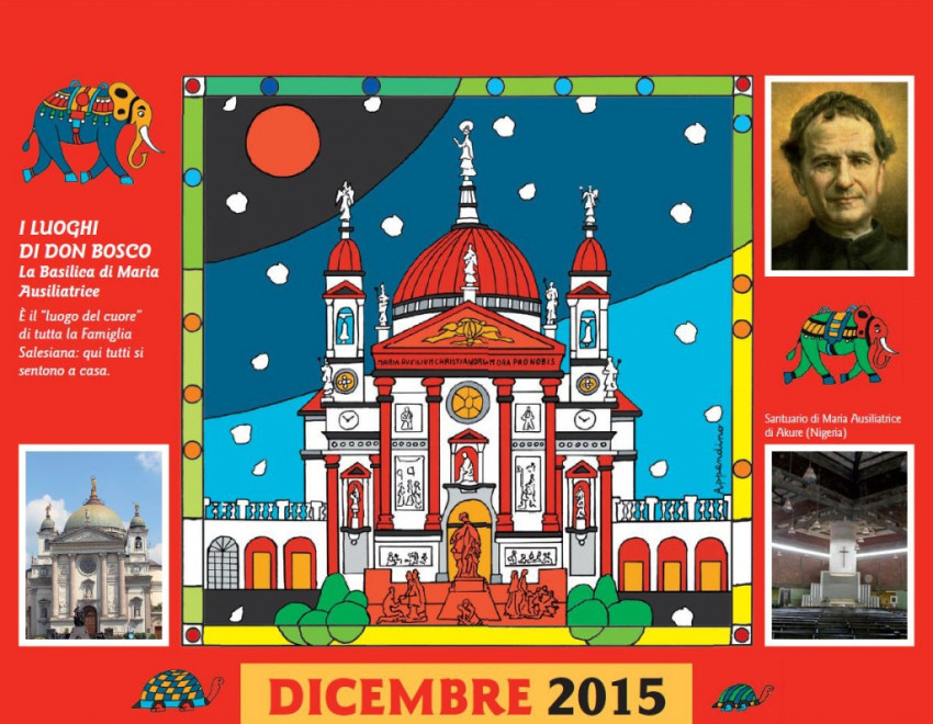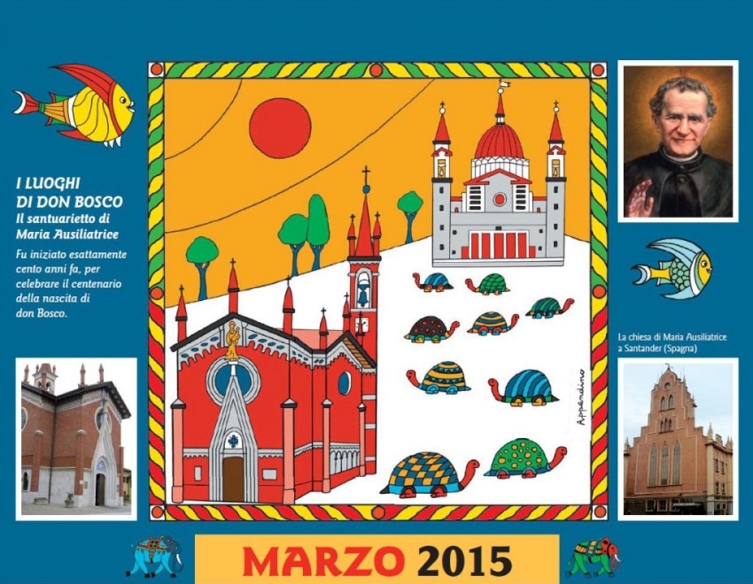 A naptárban Guido Appendino játékos, színpompás művei jelennek meg, mesebeli, égen úszó halakkal, teknősökkel, elefántokkal, virágba borult fákkal népesítve be a lapokat. Minden hónap mellett az ott látható, színes ruhába öltöztetett épülettel vagy emlékművel kapcsolatosan egy-egy „ajándék” gondolat olvasható, alul pedig Don Bosco egy-egy aktuális gondolata. A kiadványhoz ingyen hozzájuthatnak az olasz Bollettino Salesiano folyóirat megrendelői, de letölthető a lap internetes oldaláról is.