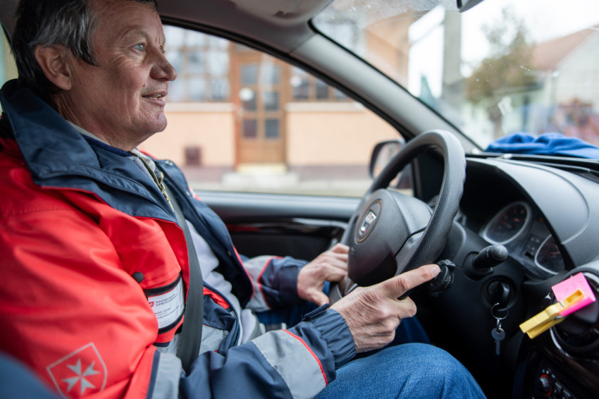 Banó József hozzáteszi, ahogy a Málta a keresztény lelkiség miatt is sokat tud adni, például gyász esetén. Viszik az embereket templomba is, ha kérik, teljes körű az emberi odafigyelés. Vele indulunk az első útra. Kevés beszédű embernek tartja magát, pedig sok érdekes dolgot mesél abban a negyed órában, amíg kiérünk a tanyákra. Amit nem mond el, azt pedig megtudjuk az emberektől: Marika néni – akihez majd a második körben megyünk – örömmel meséli, hogy amíg tudott járni, Józsi vitte reggelente a városba a nyolc kilométerre fekvő templomba. Sőt, minden nyáron elvitte őt a barátnőjéhez Vas megyébe néhány napra, amíg ő a családjával a Bakonyban nyaralt, majd a végén haza is hozta. „Őhozzá másmilyen viszony is kapcsol, mélyebb” – teszi hozzá.