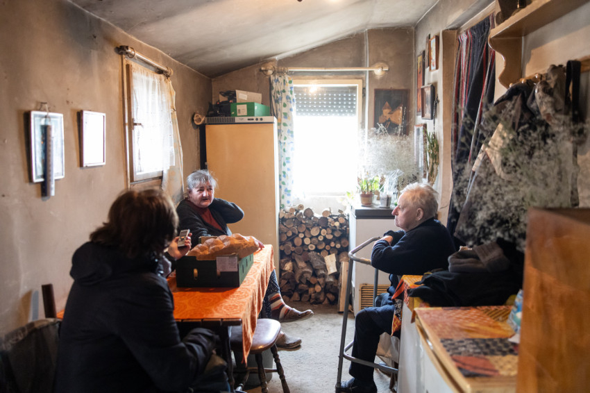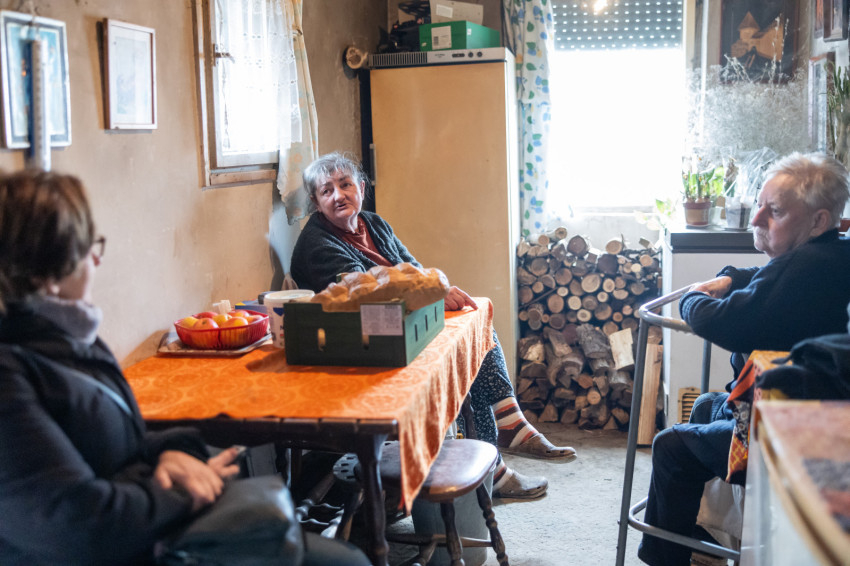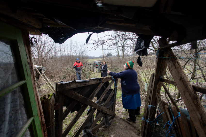 Pap Ferencné Sárát és lányát, Andreát látogatjuk meg először. Mindig öröm, amikor jön Józsi – mondják, és látszik is az örömük, viccelődnek, nevetgélnek. Nincs mobiltelefonjuk, de a tanyagondnok mindig előkeríti őket, ha kell, a szomszédból. Hozza az adományokat, tartós élelmiszert – szükségük van rá, mert egészségügyi okokból az egyikük sem tud dolgozni –, segít fát hasogatni, elbeszélget velük. Sára 70 felé jár, fürge asszony, eljár gyalog a boltba, fél óra séta, de ha beletapos a gázba – mutat a cipőire – akkor még kevesebb. Van, amikor én nem érem utol, 46 évesen, viccelődik vele a lánya. Itt született, négy testvérével együtt itt nevelkedett, nem szeretne elmenni: friss a levegő, sok a vad, tavasszal beköszönnek a kertbe a dámok. Mindig öröm, ha jön – de még jobb lenne, ha gyakrabban jönne – mondják mosolyogva a tanyagondnoknak, majd „megfenyegetik”: baj lesz, ha Sándor, József, Benedek nem hozza a meleget, a Józsefeken verik le.