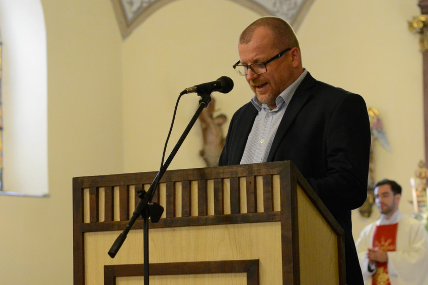 Balázsics Lászlóné a horvát nemzetiségi önkormányzat képviseletében horvátul köszöntötte az újmisést, Pásztor Jánosné pedig a képviselőtestület nevében szólt Szabolcs atyához.