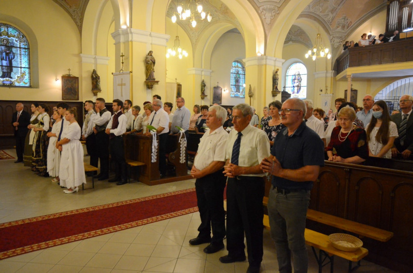 A falunak el-elcsukló hangon Posztós Lenke Szülőfalum templomába jöttem imádkozni című versével mondott köszönetet. Végül horvátul és németül is elmondta köszönő szavait.