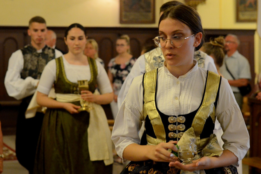 Az újmise után kezdetét vette a templom előtt rendezett szeretetvendégség. Szabolcs atya felöltötte a bunyevác mellényt, amit Luka atya ajándékozott neki. Beszélgetés, a fiatalok kóló tánca zárta az ünneplést.