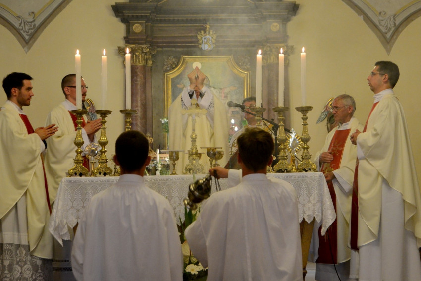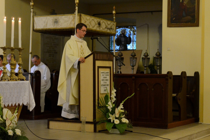 A szentbeszéd megtartására az újmisés Poljak Luka atyát, a Szabadkai Egyházmegye papját kérte fel. A horvát származású pap magyarul és horvátul is elmondta homíliáját. Tanulja a magyart. Jelenleg még Zomborban szolgála, de egyházmegyéjében olyan területre kérte magát, ahol magyar ajkúak is élnek, így fog a nyáron az észak-bánsági Moholra kerülni. Szentbeszéde egyszerre dicsérte a szülőföld szépségét, és adott tanítást a papi hivatásról. Sarlós Boldogasszony ünnepén párhuzamot vont Mária Erzsébethez vezető útja és a pap életútja között. Mária a júdeai Ain Karim városába indult útnak, hogy meglátogassa Erzsébetet. Ekkor már hat hónapja áldott állapotban van, így vállalkozott arra, hogy megtegye a hegyvidéki úton a 150 kilométert Názáretből. „Az Isten hívására válaszoló papi életút is kanyargós, kihívásokkal teli. Nehéz terepen vezető út, melyen a haladás egy életen át tartó közeledés Isten országa felé. Ahogy Mária is várt egy még nehezebb út, amikor elkísérte fiát a Kálváriára, úgy kövesd te is alázatosan egész életeden át Krisztus keresztjének útját, amely során felragyog számodra a megváltás hite, s ez a földi utad az Örökkévalóval való találkozásba torkollik”.
