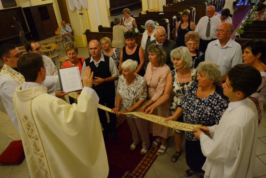 Áldásadás következett. Elsőként az édesanya, aztán az édesapa, nagymama, majd sorban a rokonság, a paptestvérek, végül minden hívő Szabolcs atya elé térdelt. „Egy újmiséért érdemes egy csizmát elkoptatni” – mutatja a mondás az áldás jelentőségét.