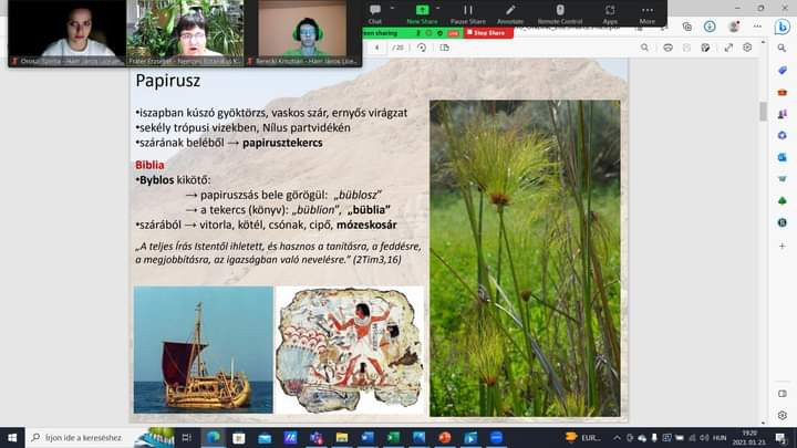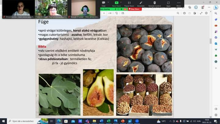 „Ha a Biblia növényeit áttekintjük, érdekes módon a leggyakoribb a szőlő, 219 helyen húztam alá a Bibliában, második a cédrus. A cédrus nem is őshonos a Szentföldön. Attól északra, Libanonban volt őshonos, de a legfontosabb fa volt az ókorban, mert hajókészítésre, nagyobb épületek gerendázatának a készítésére használták. És harmadik a sorban, mint leggyakoribb a füge, amely a bibliai idők legkedveltebb gyümölcse volt. Aztán olyan növények is nagyon gyakran előfordulnak, mint a tömjén, ami egy szent növény volt, egy növény gyantája, a len, ami a legfontosabb textilipari alapanyag volt.”