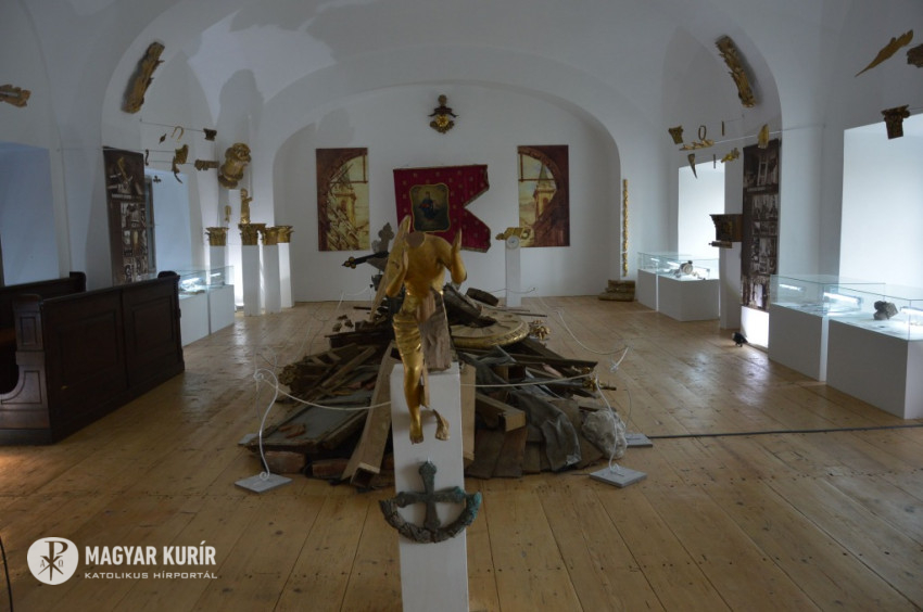 A Madonna-kápolna feletti oratóriumban kiállítás nyílt, amely felidézi a székesegyház építését, a bombázás során okozott pusztítást, az újjáépítést és az 1947-es újraszentelést. A tárlaton olyan tárgyak láthatók, amelyek a romok alól kerültek elő, de már nem helyezték vissza őket a templomba. Veres András megyéspüspök áldását követően Puskás Tivadar polgármester köszöntőjében elmondta: Szombathelynek kötelessége emlékezni a hetven évvel ezelőtti tragédiára. Utalt rá: összefogással sikerült a székesegyházat és a várost is újjáépíteni.