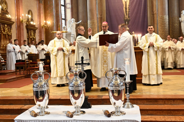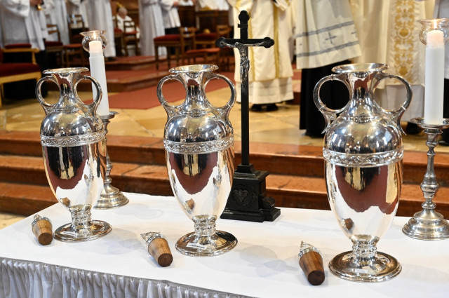A szentmise az olajszentelés szertartásával folytatódott, melyen a megyéspüspök megáldotta a betegek olaját, a katekumenek olaját és a krizmát.