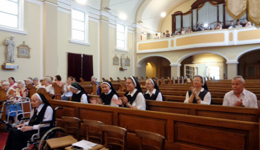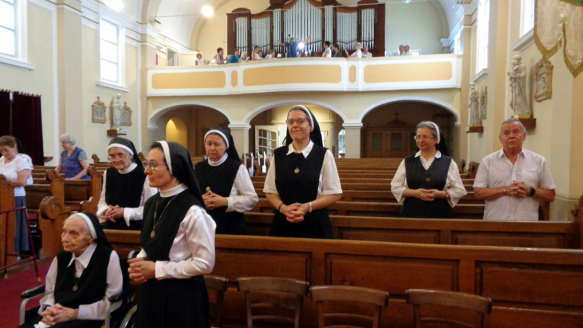Máriai Franciska M. Romuálda szerzetesnővér 97. születésnapját és szerzetesi fogadalmainak 75. jubileumát az otthon melletti Jézus Szíve-plébániatemplomban hálaadó szentmisével ünnepelték, melyet Burányi Roland és Kispál György plébános mutatott be.