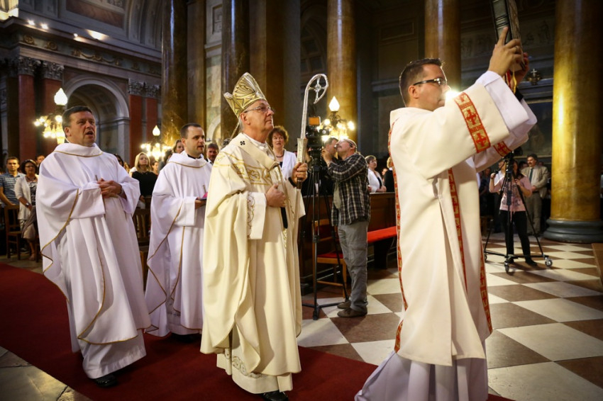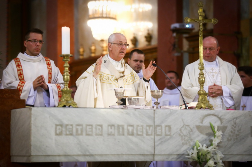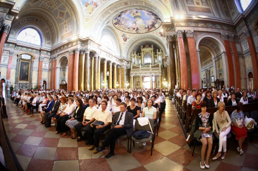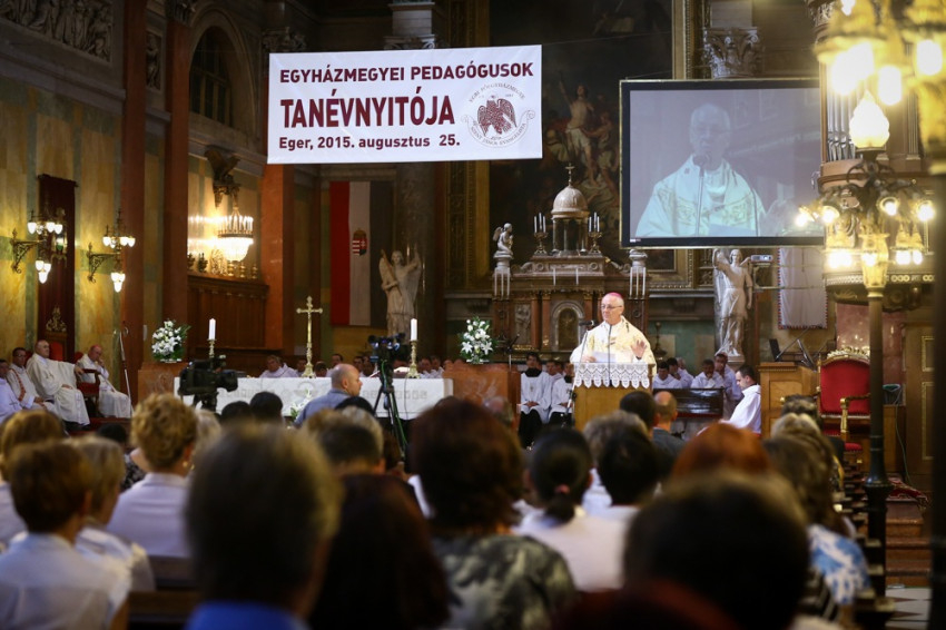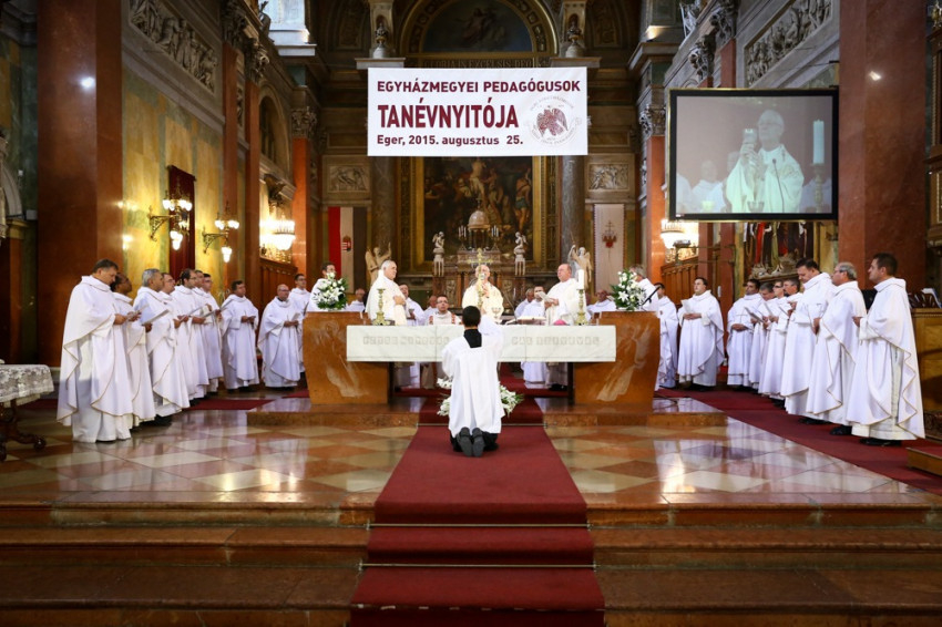Ternyák Csaba érsek örömét fejezte ki, hogy az egyházmegyei iskolák dolgozóival közösen ünnepelheti az új tanév kezdetét, és utalt a bazilika kupolájára, amely szimbolikusan ezt a közösséget fejezi ki: összegyűjti, egybehívja a jelenlévőket, amely egybehívás voltaképpen a Szentlélek munkája. Az érsek megemlékezett a nap szentjéről, Kalazanci Szent Józsefről, a piarista rend alapítójáról, aki az ifjúság nevelőjeként az igazságot szolgálta életével.