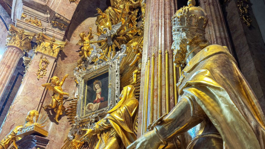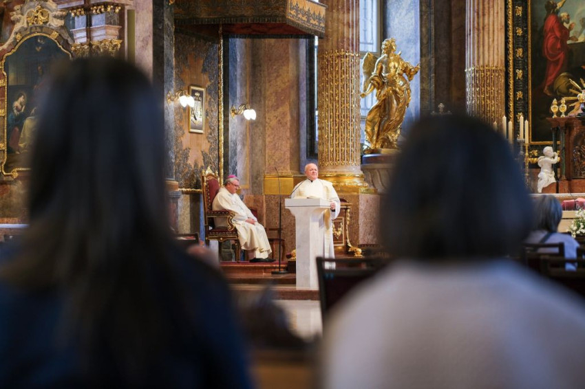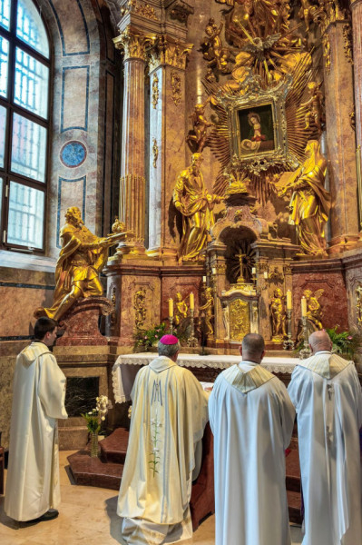 A szentmise végén a paptestvérek és a hívek a Könnyező Szűzanya kegyoltára előtt imádkoztak Veres András püspök vezetésével.