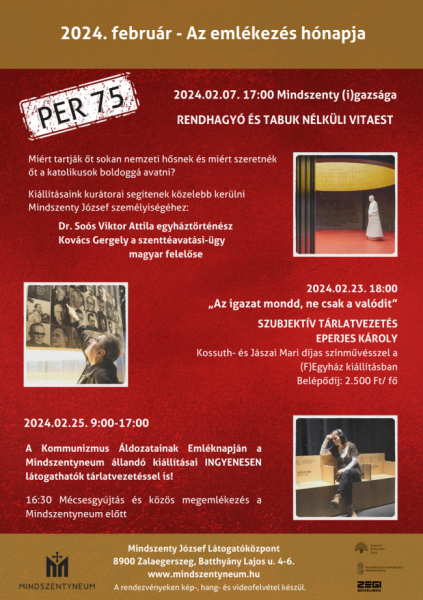 Ebből az alkalomból Mindszenty (i)gazsága címmel egy rendhagyó és tabuk nélküli vitaestre hívnak minden érdeklődőt a Mindszentyneumba, február 7-én, szerdán 17 órától.