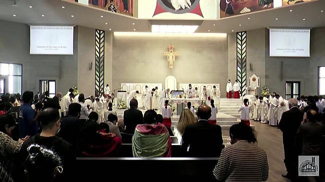 Az ünnepen jelen volt mások mellett Paul Hinder kapucinus szerzetes, Észak-Arábia apostoli vikáriusa, Eugene Martin Nugent érsek, Kuvait és Katar apostoli nunciusa. A hívek a járványügyi korlátozások miatt csak korlátozott számban vehettek részt az ünnepélyes szertartáson.