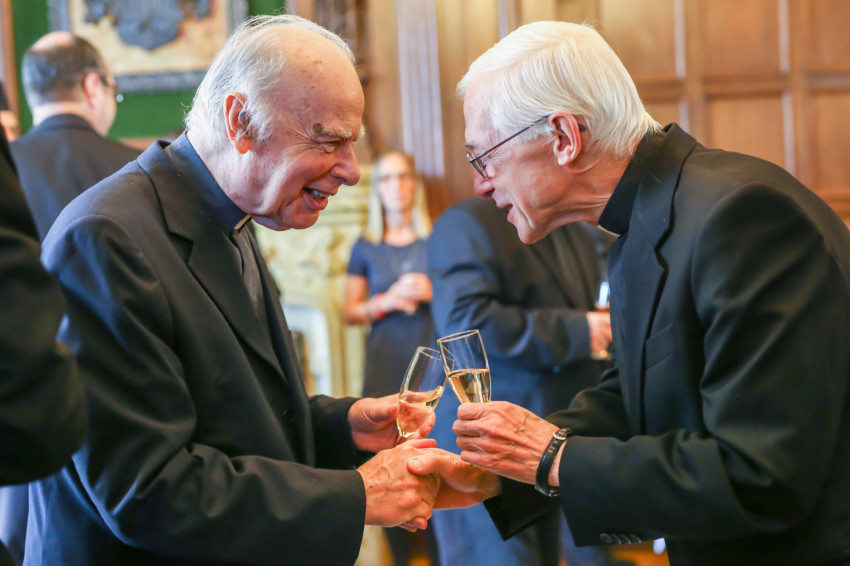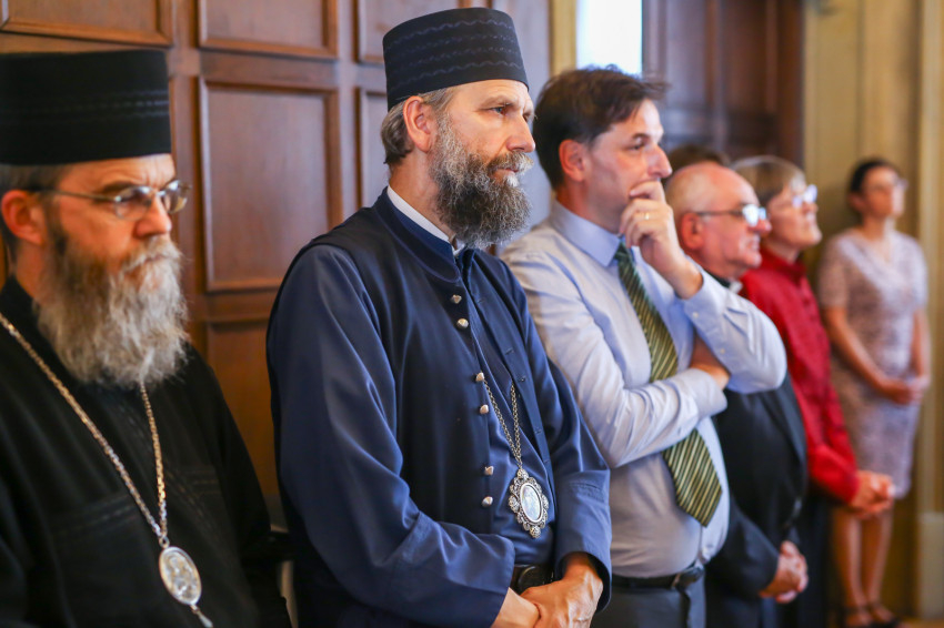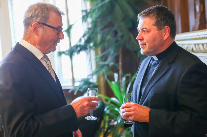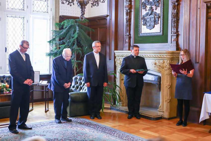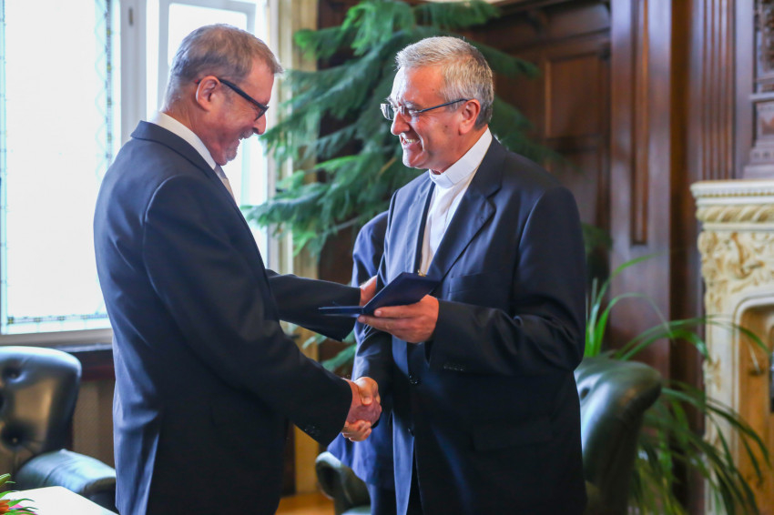 Veres András püspök köszöntőjében kiemelte, hogy két életművet állítanak most példaként mások elé. Lukács László SchP munkássága során a hit és a kultúra területén alkotott kiemelkedőt, Bodonovich Jenő pedig évtizedekig a Magyar Katolikus Püspöki Konferencia intézményeinek alakulásában, formálódásában nyújtott jogi segítséget.