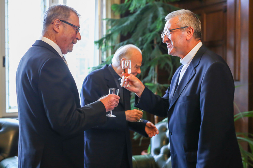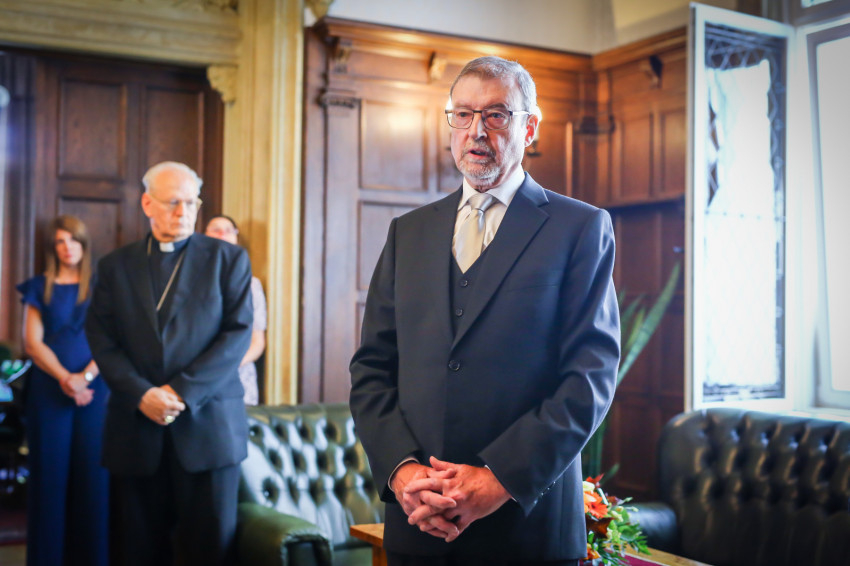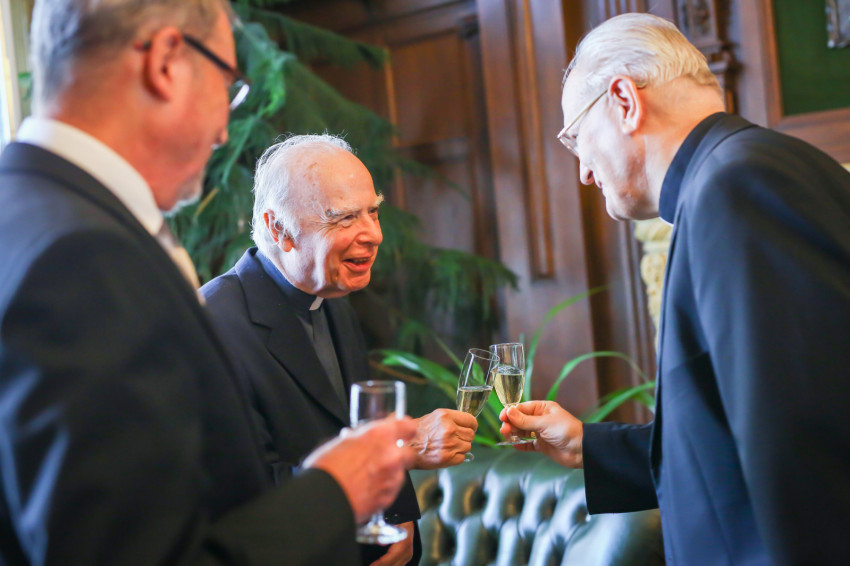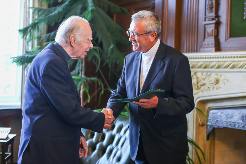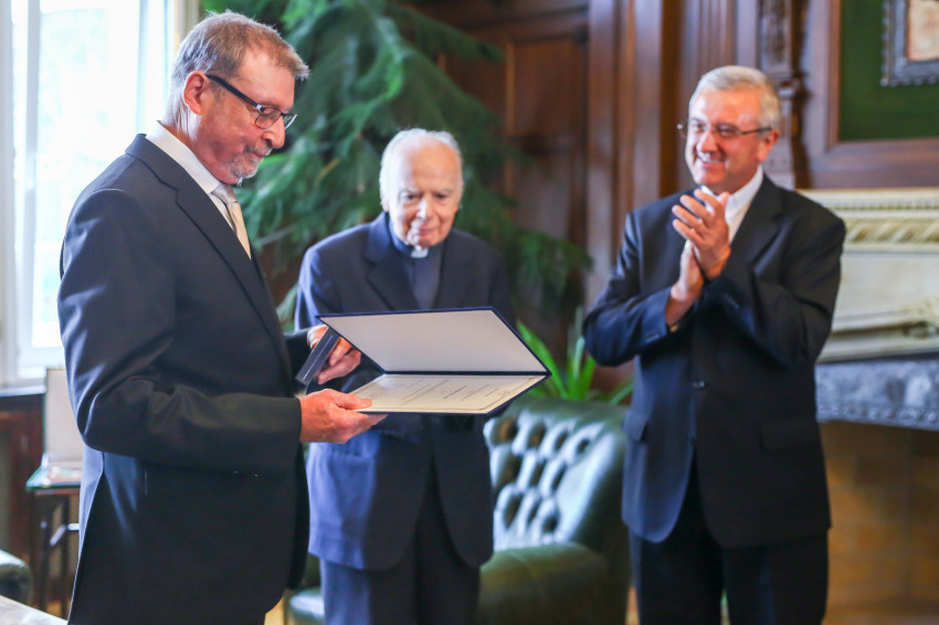 Lukács László SchP – megköszönve a kitüntetést – idézte a rend jelmondatát: Pietas et litterae, azaz kegyesség és tudomány. Mint mondta, ez határozta meg egész életét, miután a teológiai tanulmányai mellett magyar nyelv és irodalom szakot is végzett. Hozzátette: a teológia a kinyilatkoztatás fényét felülről továbbítja az emberek felé, míg az irodalom a kultúra eszközeivel mutatja meg mindazt, ami az Úristen országából itt, a földön látszik. E kettősséget tudta tanárként is megvalósítani, amikor hittant, magyart és művészettörténetet taníthatott a kecskeméti iskolában.