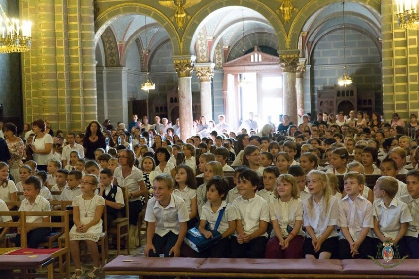 A Hunyadi úti épületben az alsó tagozatosok külön köszöntötték elsős társaikat, és együtt imádkoztak értük.