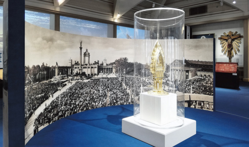 Az eucharisztikus kongresszusok története a 19. század második felében kezdődött. Egy olyan korszakban, amelyben a szabadelvűség nyomán megerősödő ateista eszmék a politikai kormányzásban is éreztették hatásukat. E szellemi áramlatok Franciaország társadalmi életét különösen átjárták, ezért érthető, hogy az eucharisztikus kongresszusok szervezése ebből az országból indult útjára – olvashatjuk a falon lévő szövegek között a kiállításon.