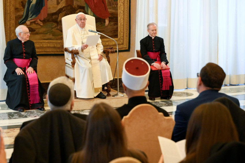 Beszéde végén Ferenc pápa arra buzdította az egyetemes béketanács delegációjának tagjait, hogy „tartsák életben a reményt”.