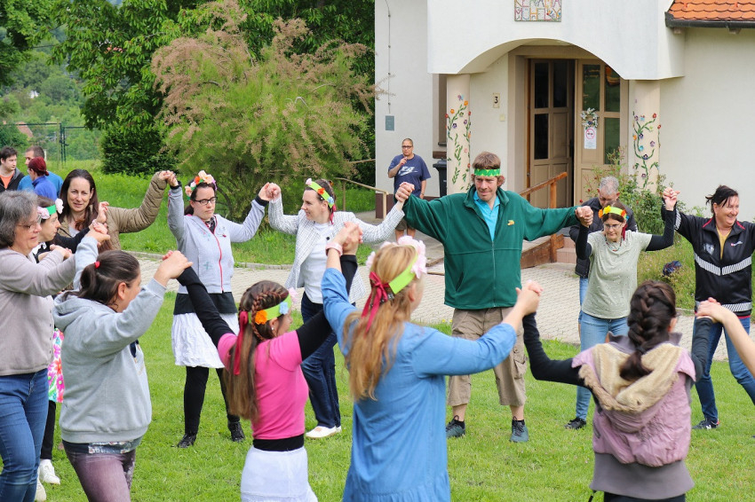 A nap reggel kilenc órakor kezdődött egy játékos, zenés bemelegítéssel, Mrázné Jáger Júlia, a Máltai Kerámia Műhely vezetője irányításával. A lakók és munkatársak magyar népdalokra körtáncot jártak, amit nevetések és kedves ölelések tettek igazán bensőségessé.