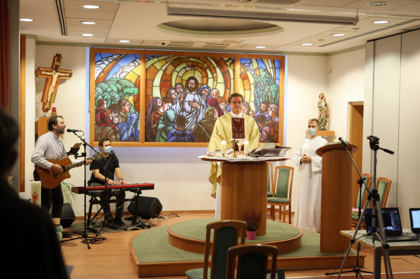 A szentmisét Burányi Roland, a Katolikus Szeretetszolgálat intézményeinek lelkipásztora celebrálta, a zenei szolgálatot Csiszér László vezette a Magyar Katolikus Püspöki Konferencia budapesti irodaházában.