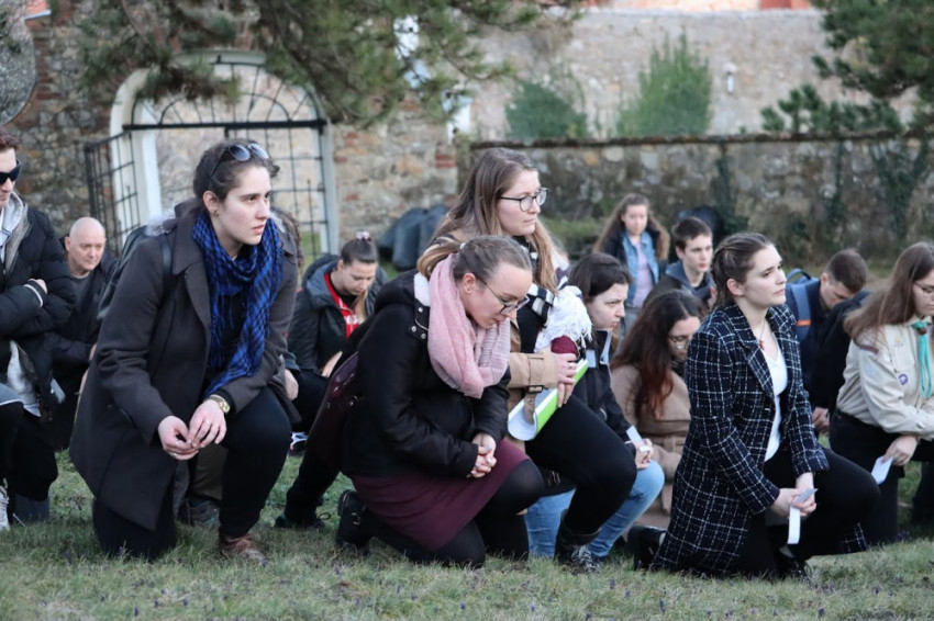 A Pécsi Katifi, a helyi egyetemi lelkészség, a ministráns referatúra, az Antióchia Közösség, a XXIII. János Pápa Szakkollégium, valamint a középiskolás és egyetemista cserkészek Berecz Tibor iskolalelkész, székesegyházi káplán vezetésével járták végig a tizennégy keresztúti stációt. Az elmélkedések és imádságok szövegét a fiatalok saját maguk fogalmazták meg és olvasták fel.