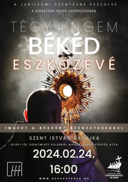 A pápa imafelhívásához csatlakozva és a 2025-ös jubileumi szentévre való felkészülésként az MSZKI szeretettel hív és vár mindenkit február 24-én, szombaton a budapesti Szent István-bazilikában a békéért és kiengesztelődésért tartandó közös imára.