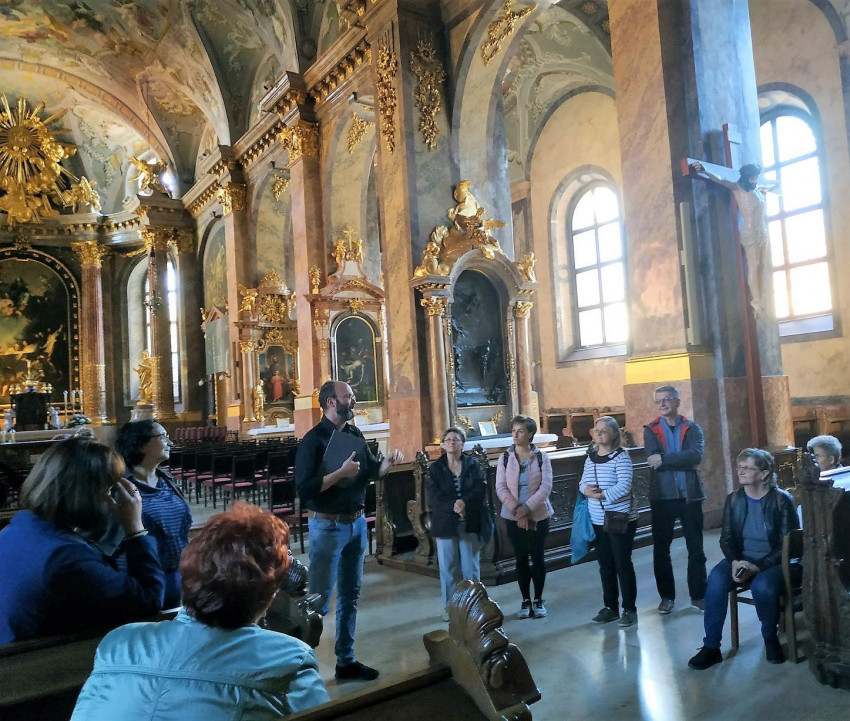 Gyarmati András főrestaurátor a győri székesegyház felújítási munkálatainak aktualitásairól beszélt, érdekességeket és kulisszatitkokat is elárulva az érdeklődőknek. Idén az orgona felújításáról esett bővebben szó; a résztvevők a felújított sekrestyét és benne a kivételesen szép miseruhákat is megcsodálhatták.
