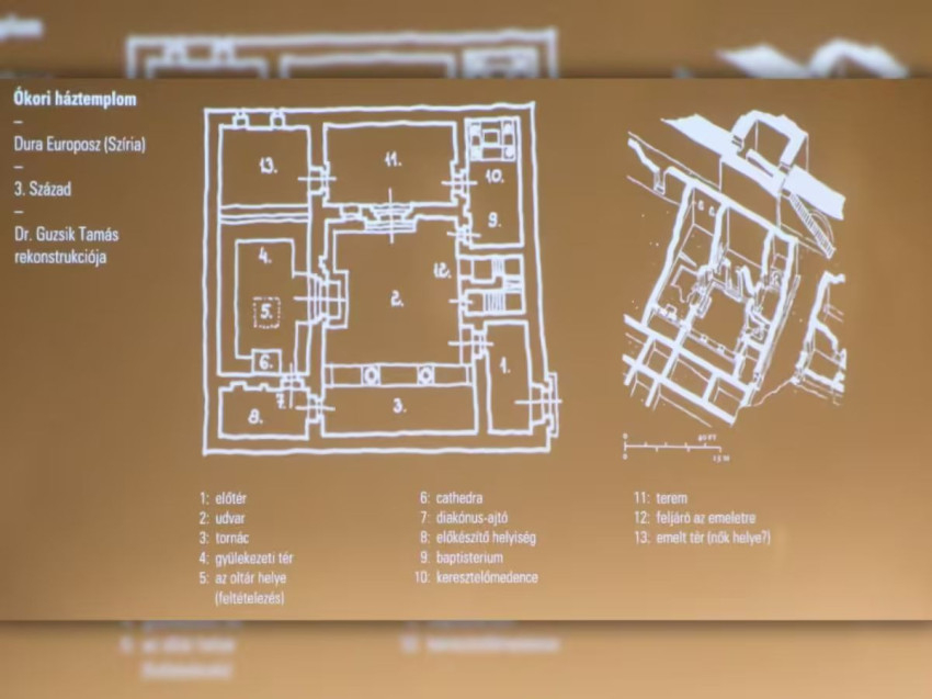 Első példaként említette a Dura-Európoszban található háztemplom maradványait, mint az ókori keresztény közösségek történetének fontos fejezetét. Dura-Európosz kozmopolita kereskedőváros volt a mai Szíria területén, az Eufrátesz folyó mentén. A város feltárása során az egyik lakóházban találtak egy keresztény gyülekezeti helyet, amelyet a szakirodalomban háztemplomként emlegetnek. Ez a háztemplom az első keresztény közösségek jellegzetességeire világít rá: tagjai egy lakóházban gyűltek össze, ahol a közösségi rítusokat gyakorolták.