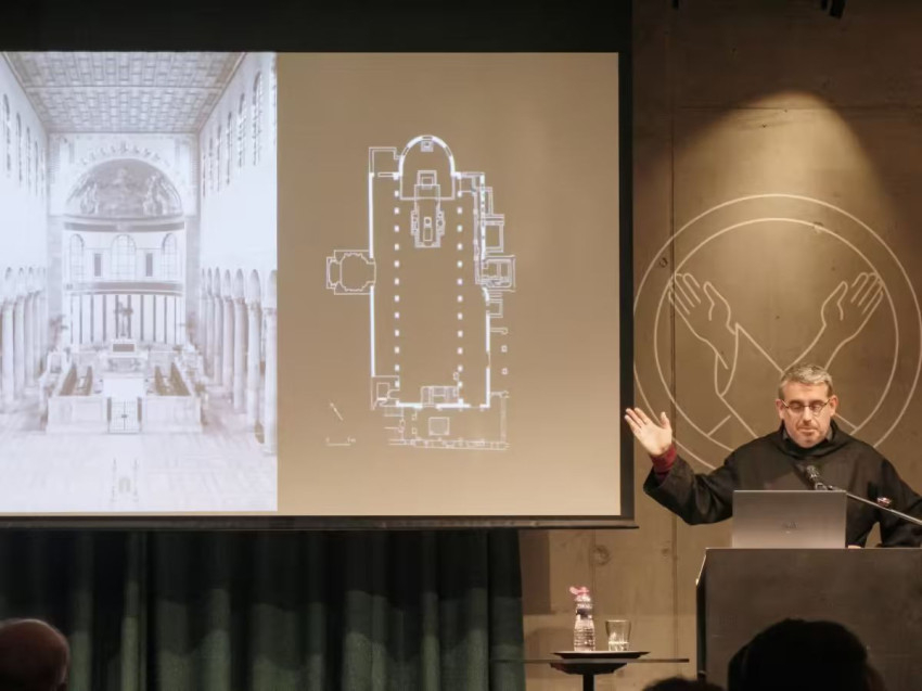 A bencés szerzetes előadását rögtön a templom szó magyarázatával kezdte, amely a húsvét (a húsevés tilalmának feloldása) és a vasárnap (amely napon a vásárok voltak) sorába illeszkedik, hiszen nem az egyházi-teológiai hagyományból ered. Ennek a szónak a gyökerei a felvilágosodás időszakába nyúlnak vissza, amikor a görög-római kultúra és a latin nyelv hatása megerősödött. A nagy európai nyelvekben az egyházi közösséget és az épületet gyakran egyazon szóval nevezik meg.