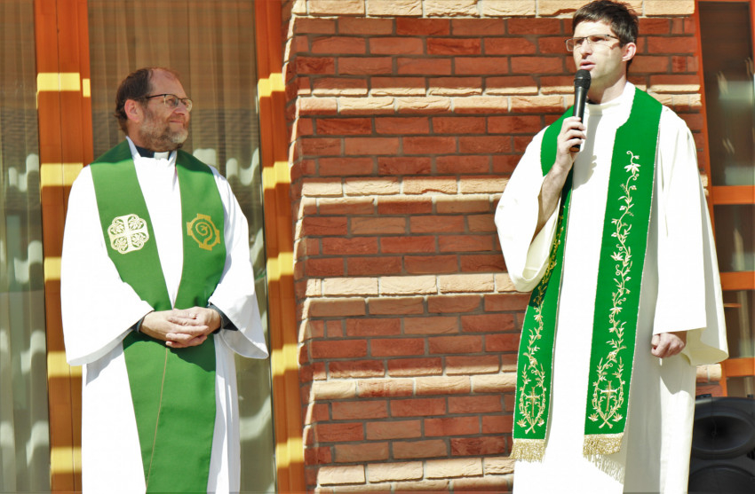 A program nyitásaként Nobilis Márió, a Sapientia Szerzetesi Hittudományi Főiskola tanszékvezetője, a Naphimnusz Teremtésvédelmi Egyesület alapító tagja, illetve a Laudato si’ magyar fordításának szakmai lektora mondott köszöntőt, majd megáldotta a plébániakertbe nagypénteken elültetett öt új facsemetét, a régi plébániaépületben újonnan kialakított – a jövőben előadásoknak, gyakorlati foglalkozásoknak helyet adó – teremtésvédelmi műhelyt, illetve azt a táblát, amelyet mintegy mementóként állítottak a plébánia- és templomkert bejáratához, s amelyen a pápai teremtésvédelmi enciklikából olvashatók szemelvények.