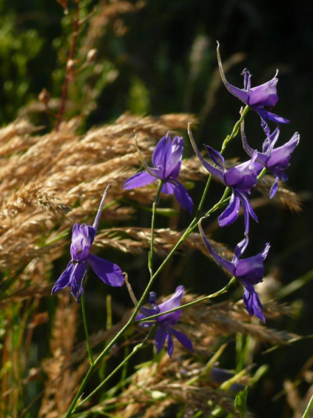 A haranglábak különleges szépségű virágában az öt mézfejtő hosszú sarkantyúvá nyúlik, köztük az öt sziromlevél, és mindegyik egyformán színes. A növény a sarkantyúk végébe rejti a nektárt, és ezt a rovar csak úgy tudja megszerezni, hogy mélyen belebújik érte a virágkehelybe, így közben nagy biztonsággal elvégzi a megporzást is. Alkonyatkor, amint a lemenő nap fényében áttetszővé válnak a virágok, jól megfigyelhető, ahogy szinte teljesen eltűnik a pontosan rá méretezett üregben a rovar, és a szívókája éppen eléri a jutalomcseppeket.